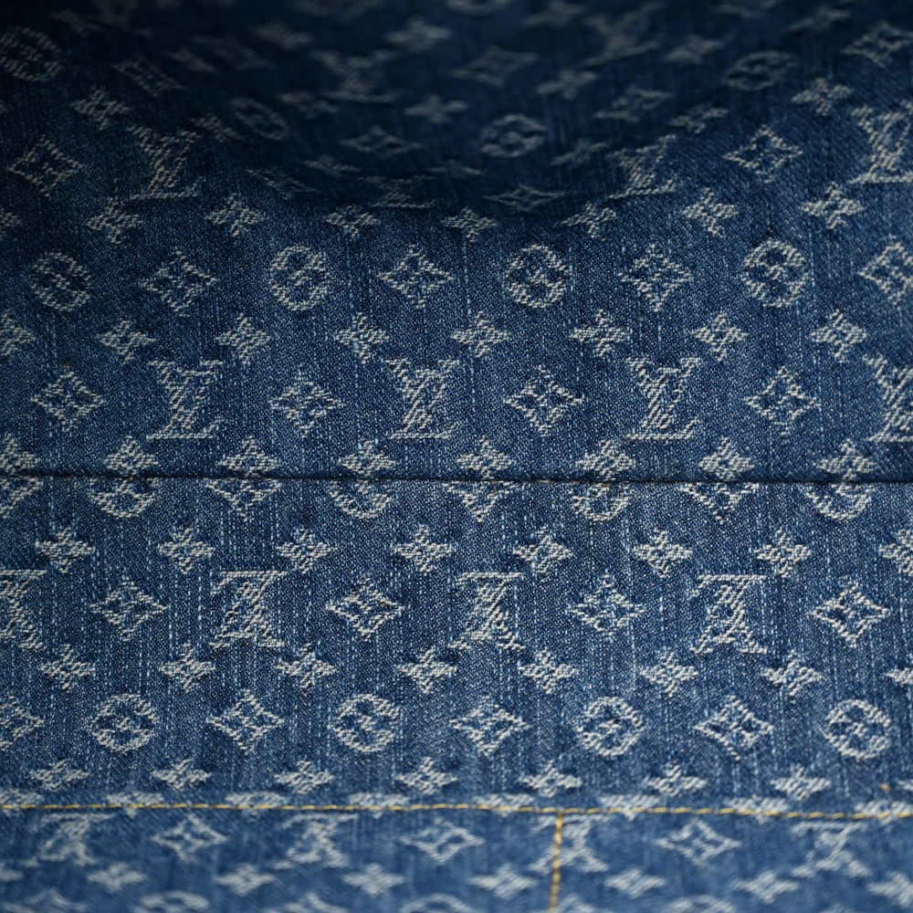 This Louis Vuitton Blue Monogram Denim CarryAll MM is a versatile bag made from jacquard denim with a unique stone-washed effect. It features an adjustable strap, gold hardware, and a spacious interior lined in denim with a pochette and multiple pockets for organization. This CarryAll is perfect for those who need a durable yet stylish bag for everyday use.